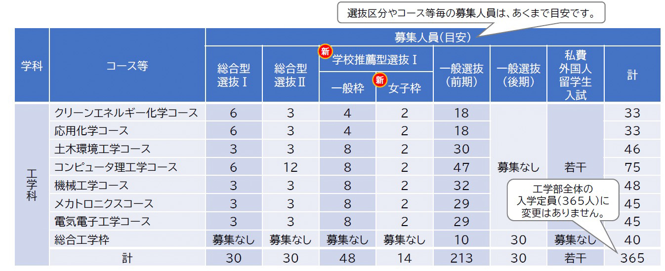 - 総定員(365⼈)の枠内で各コースの募集⼈員をニーズ等を踏まえて弾⼒的に設定