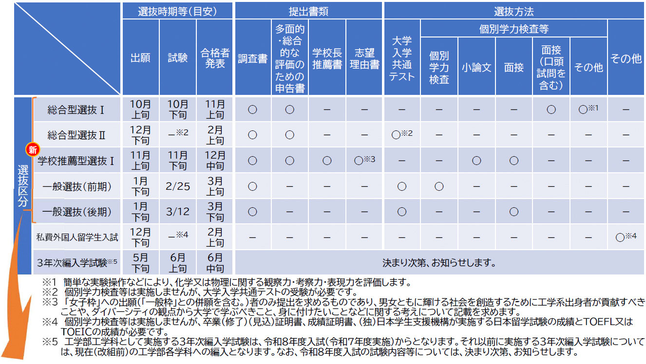 各入試方法の詳細情報は学生募集要項を確認してください。